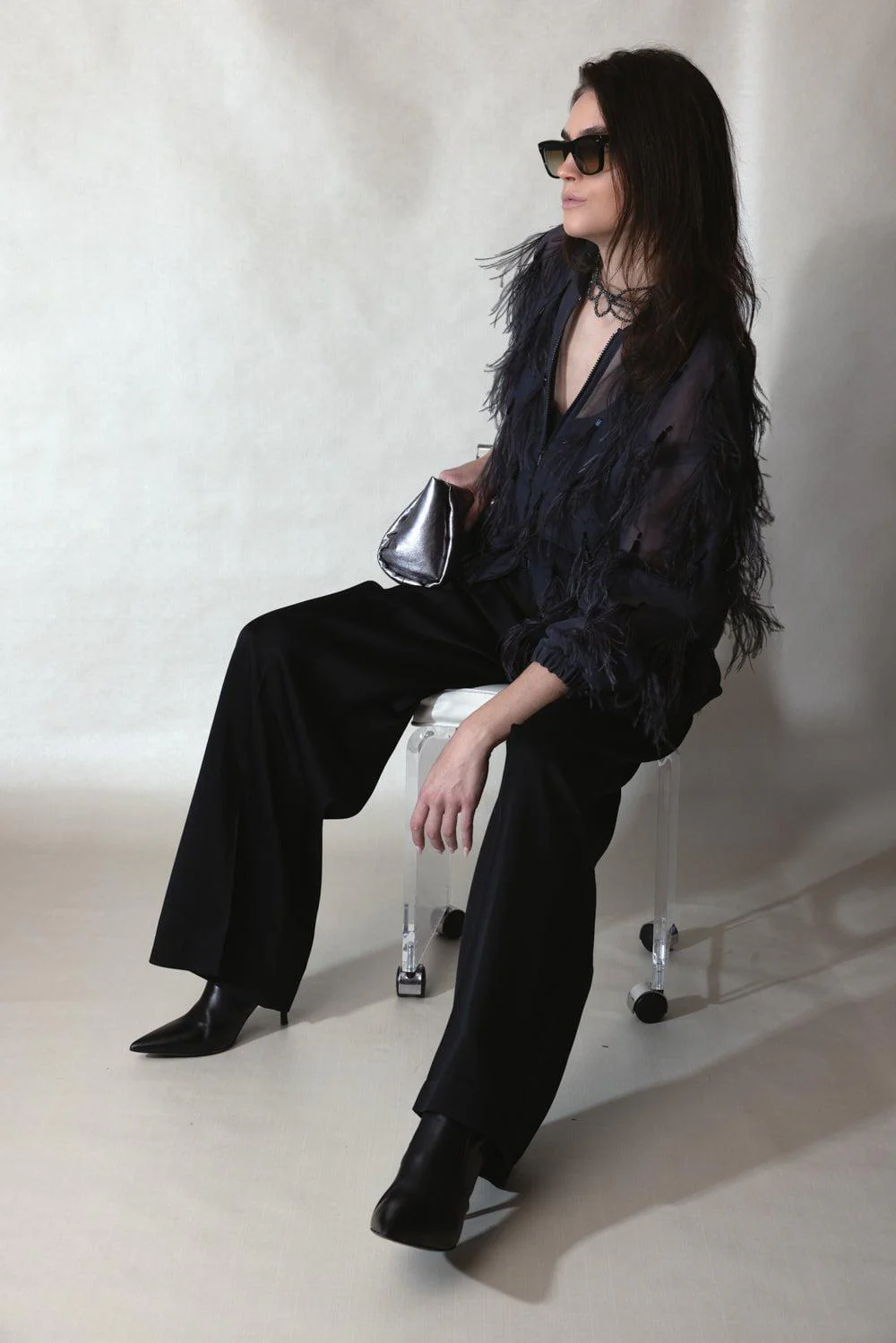 Dazzling Feather Embroidered Bomber Jacket