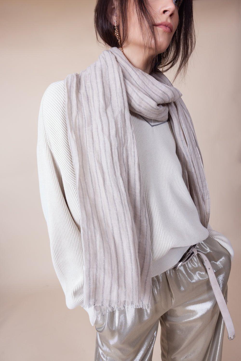 Brunello Cucinelli striped scarf in white.