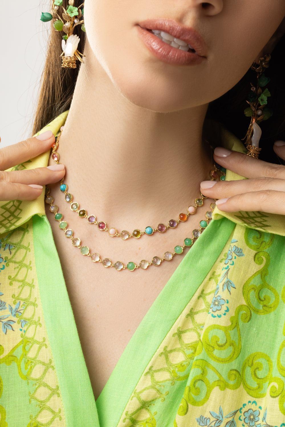 Irene Neuwirth small classic link mixed multi necklace in yellow gold.