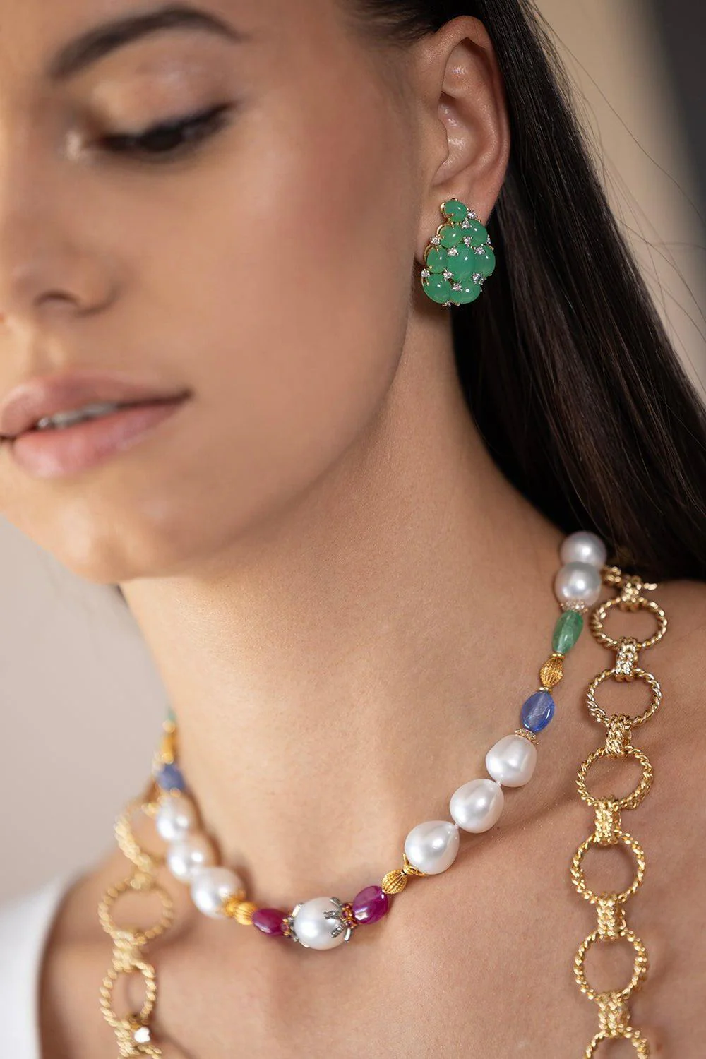 Baroque South Sea cultured pearls, Emerald, Sapphire, Ruby, Diamonds